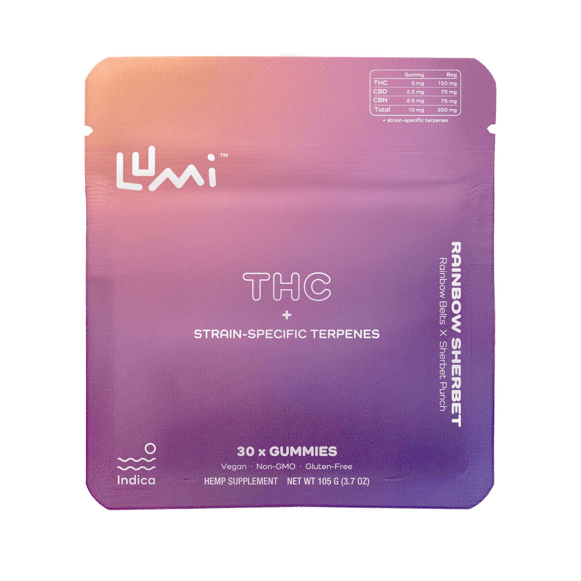 Rainbow Sherbet indica gummies are enriched with specific terpenes to enhance the effects of THC: